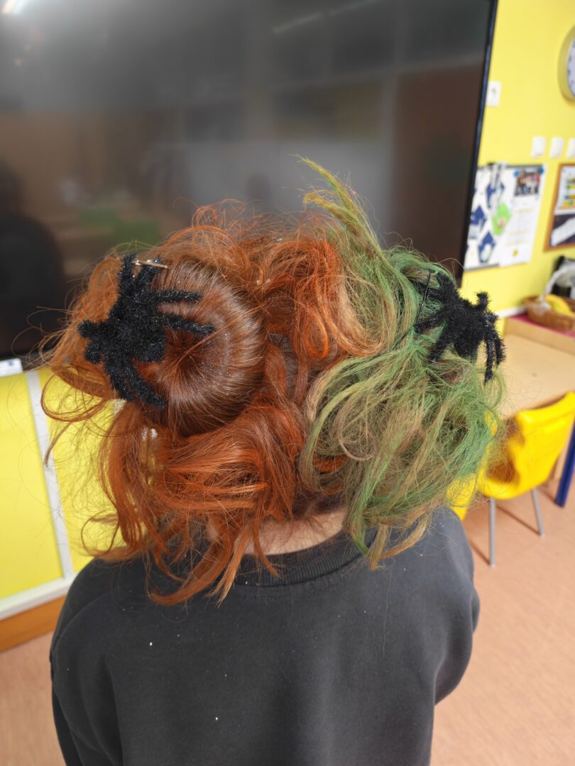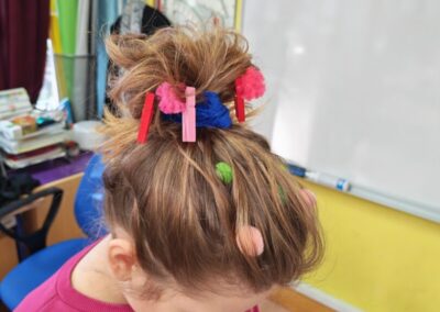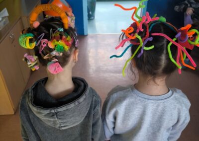Svega je tu bilo: visokih frizura, raznih boja kose, paleta za likovni, boca u kosi, paukova u kosi…. Puno puno maštovitih i lijepih frizura prošetalo je taj dan našom školom.